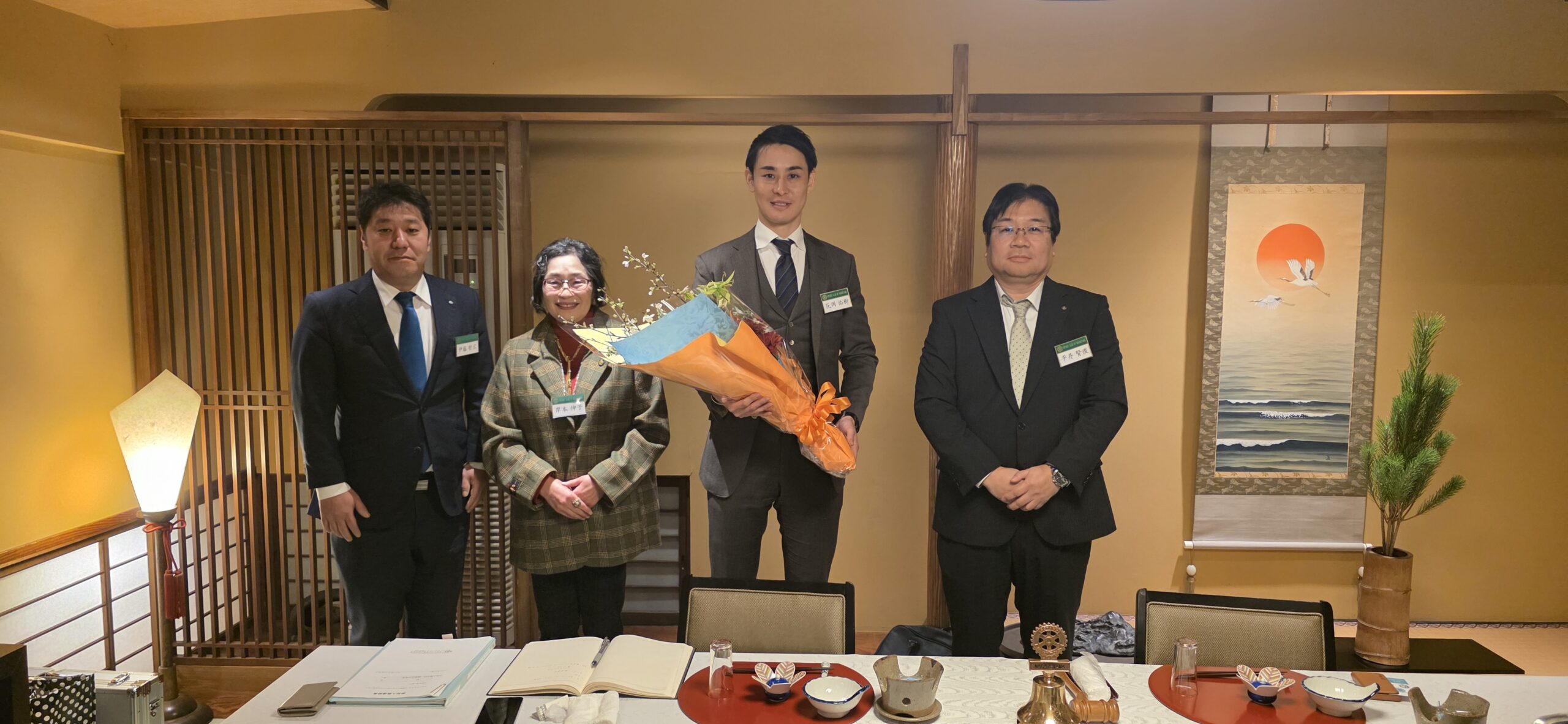 また、本日は昨年12月に入会しました花岡佑樹(はなおかゆうき)さんの歓迎会も行いますので、宜しくお願い致します。