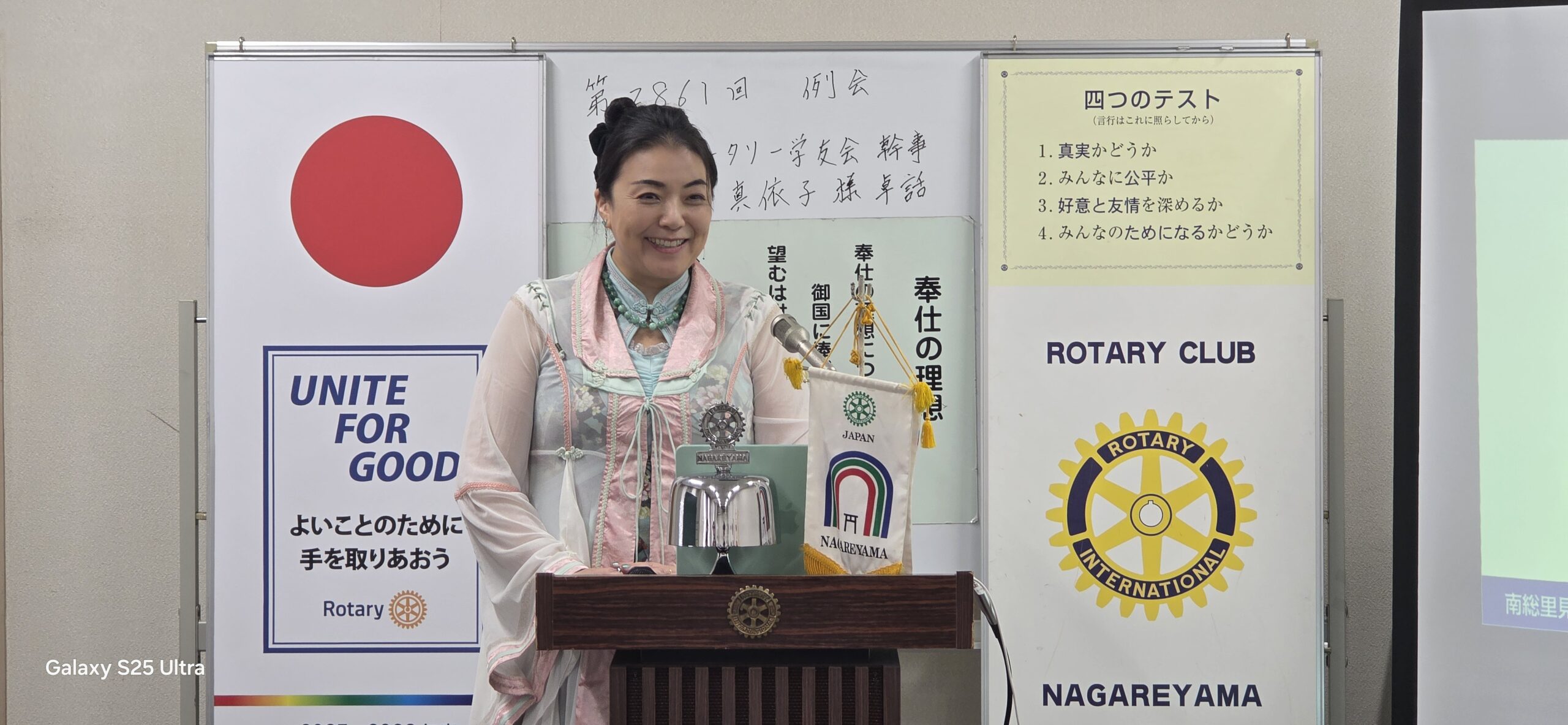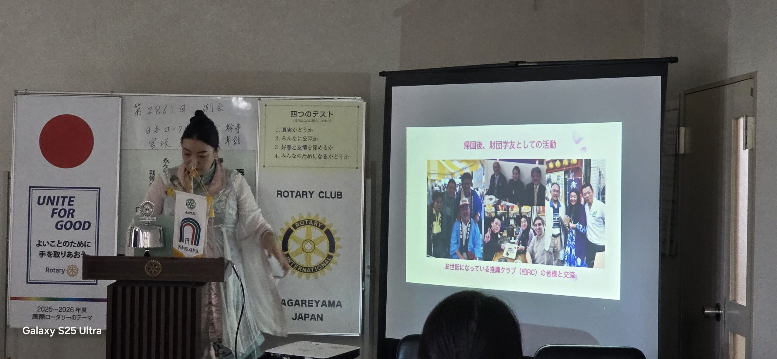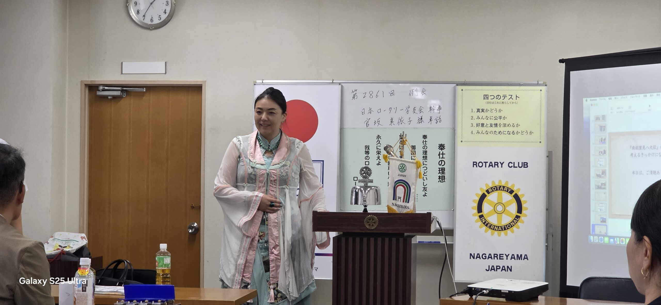 本日は、熊坂牧子会員のご紹介により、元国際親善奨学生で現在 国際ロータリー第2790地区「八犬伝プロジェクト」実行委員であり日本ロータリー学友会幹事の宮坂真依子様の卓話となります。2025-26年度国際ロータリー第2790地区の時田清次ガバナーは「私たちのふるさと、千葉に残る南総里見八犬伝の物語を通じて、文化・歴史から千葉のルーツを考えることや道徳を考える機会のための事業」を展開しており博物館や美術館にて美術品等を展示しております。