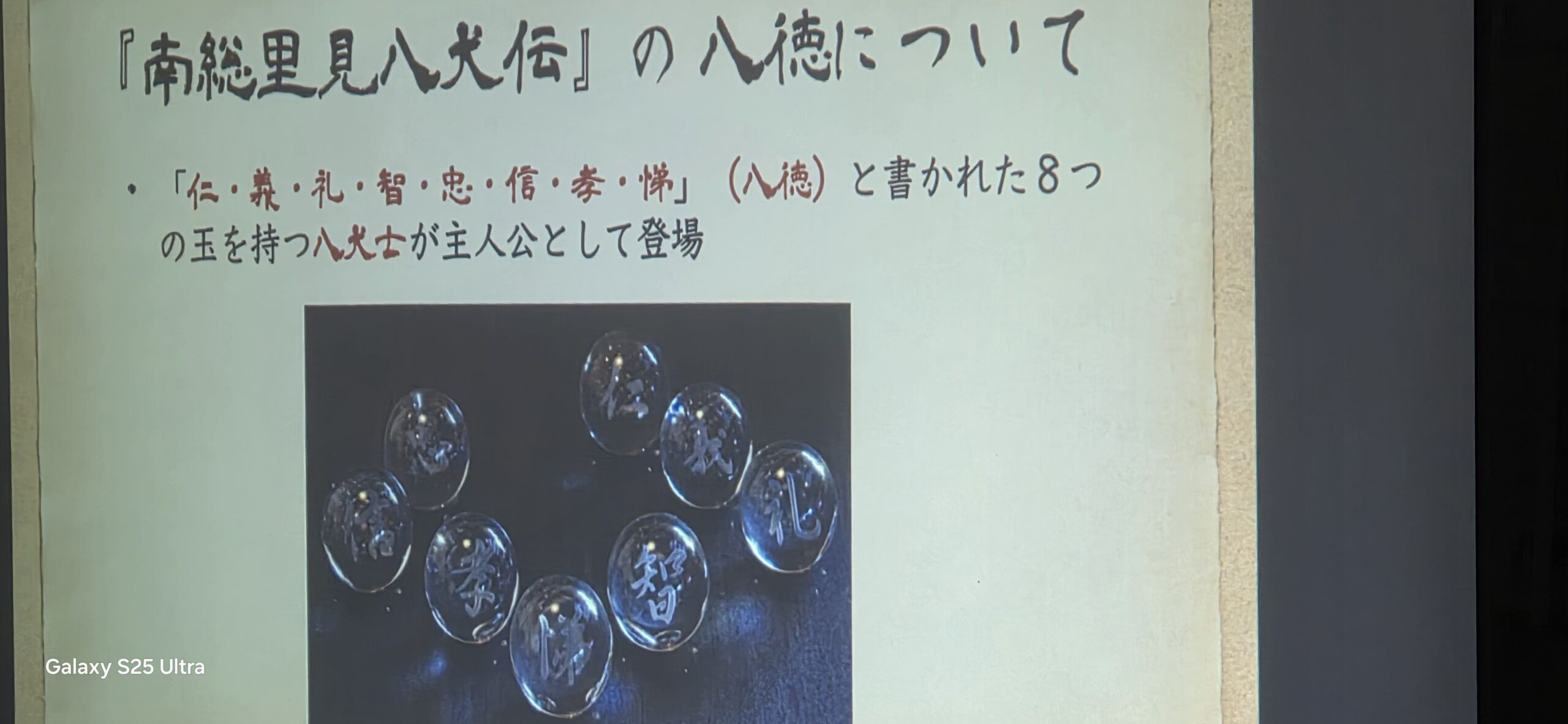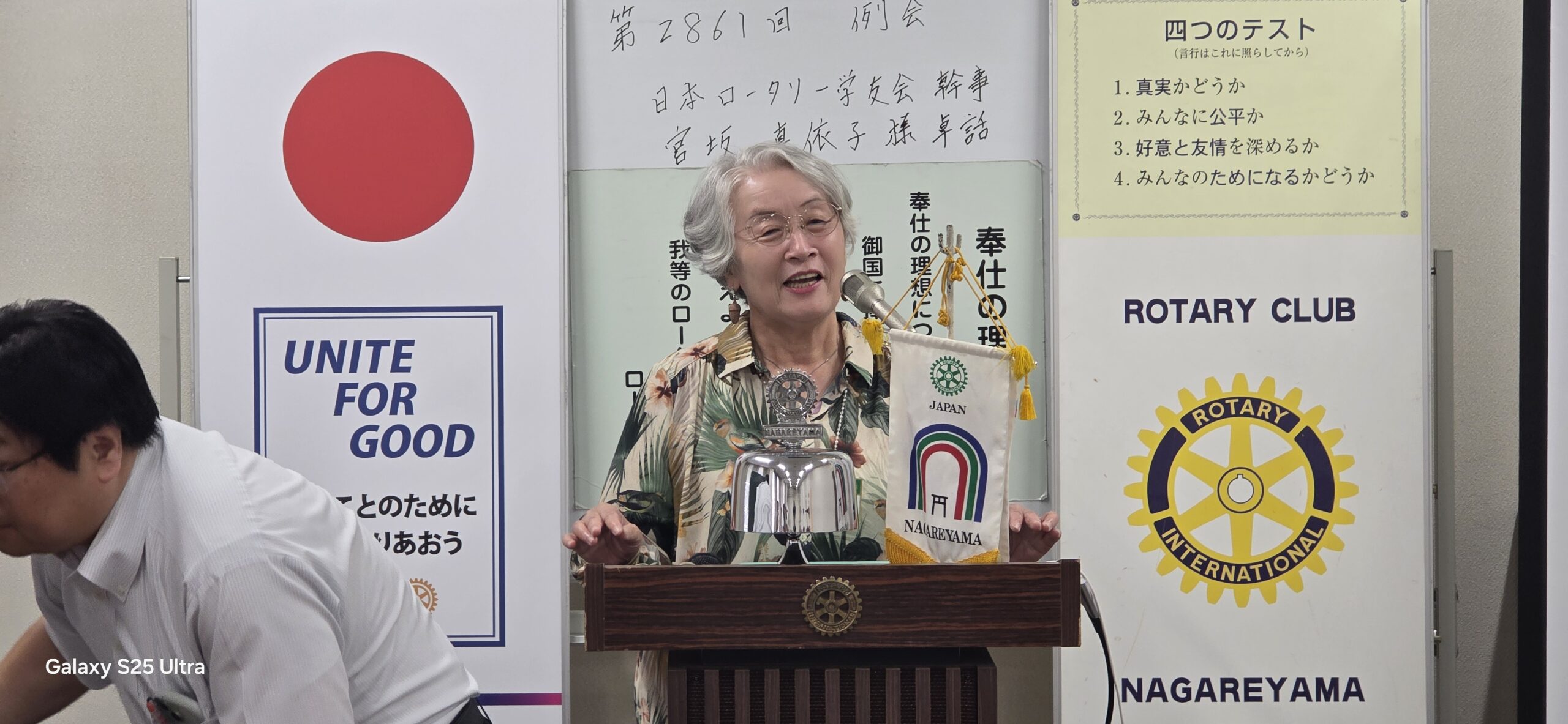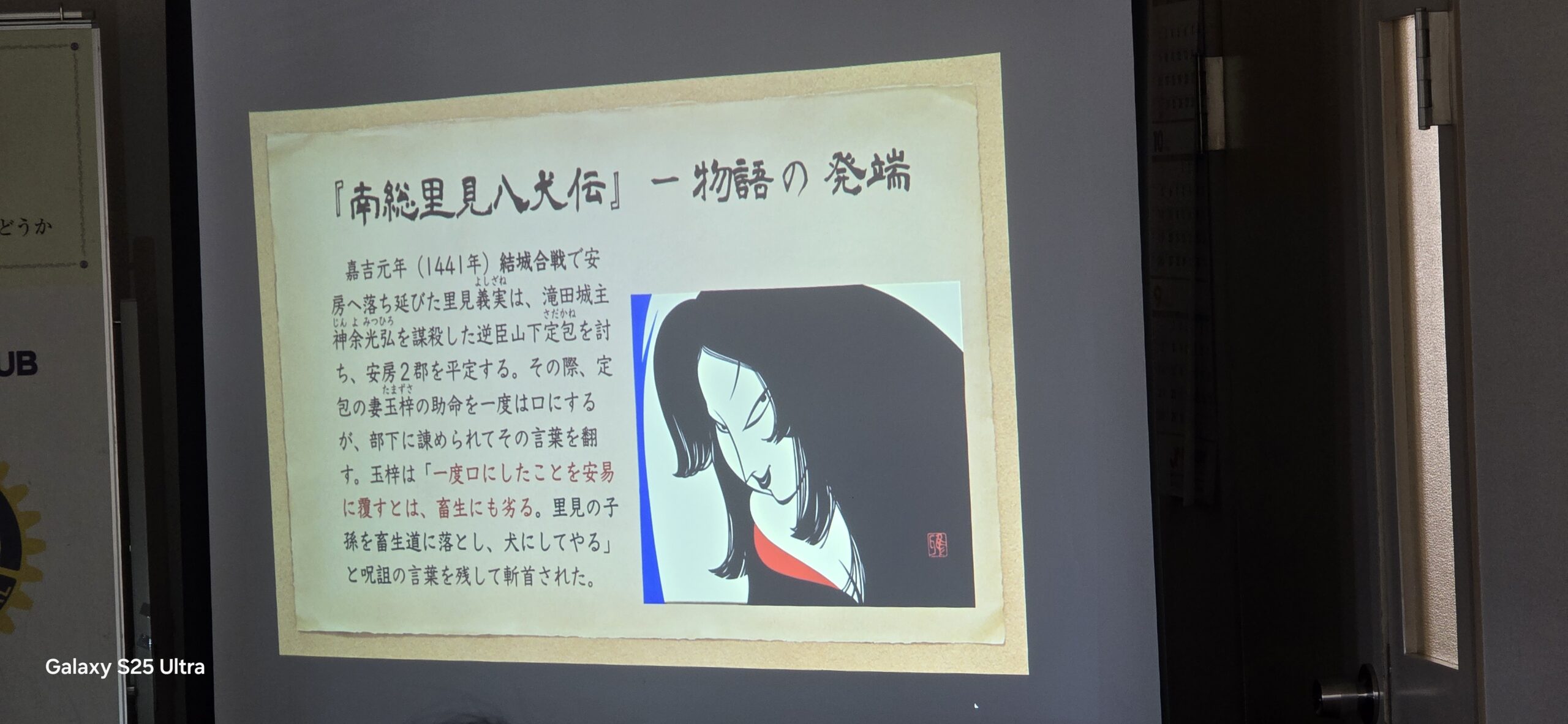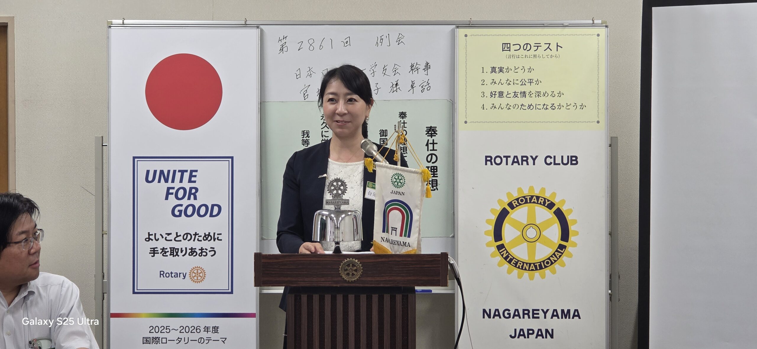 本日は、熊坂牧子会員のご紹介により、元国際親善奨学生で現在 国際ロータリー第2790地区「八犬伝プロジェクト」実行委員であり日本ロータリー学友会幹事の宮坂真依子様の卓話となります。2025-26年度国際ロータリー第2790地区の時田清次ガバナーは「私たちのふるさと、千葉に残る南総里見八犬伝の物語を通じて、文化・歴史から千葉のルーツを考えることや道徳を考える機会のための事業」を展開しており博物館や美術館にて美術品等を展示しております。