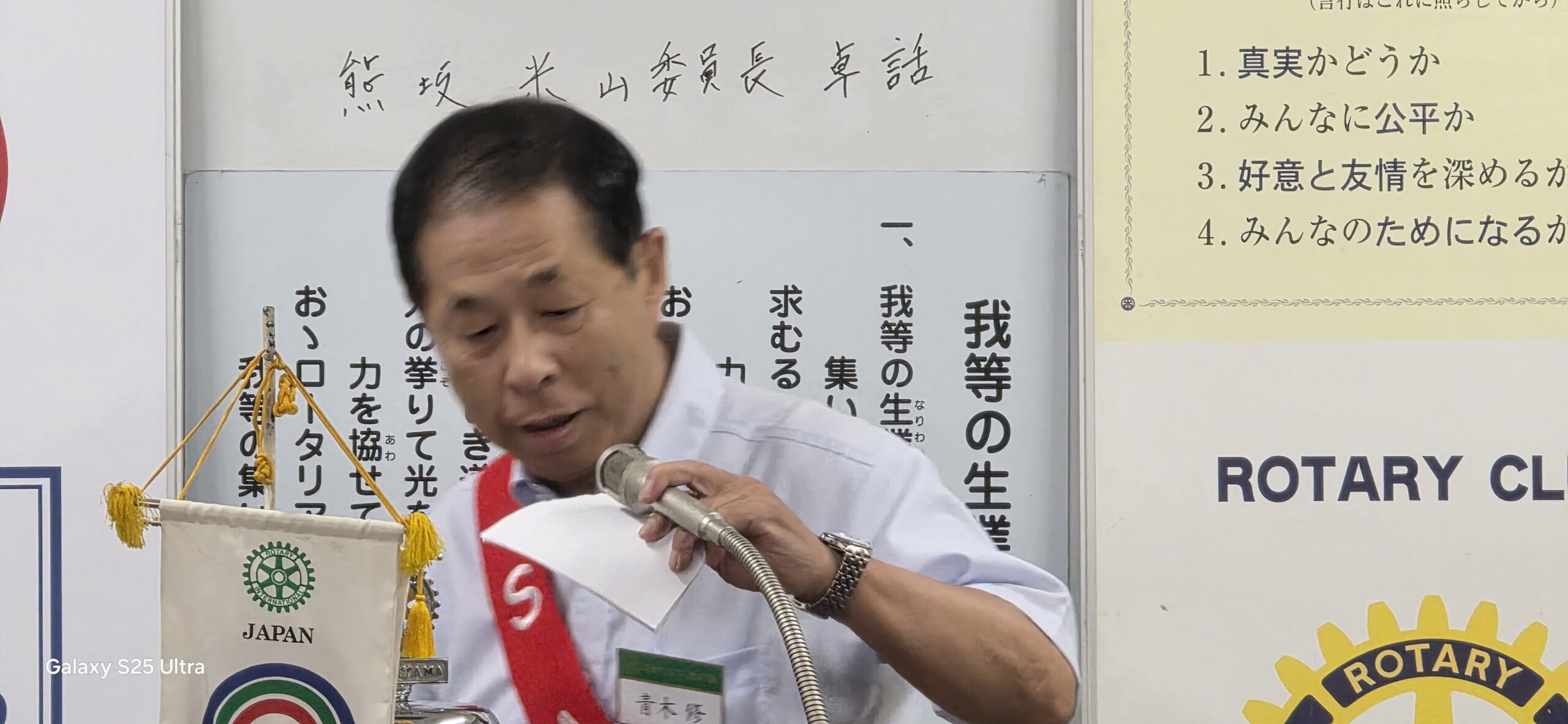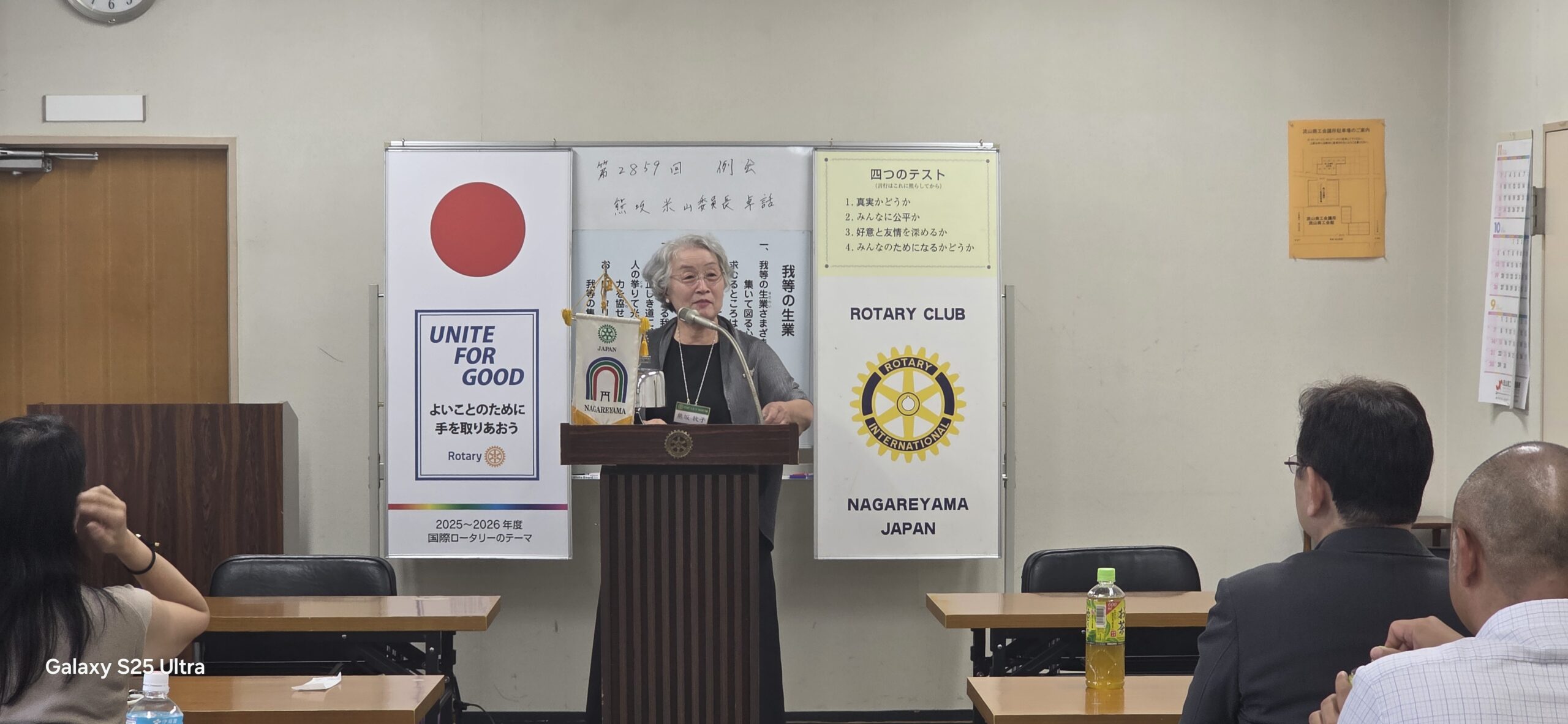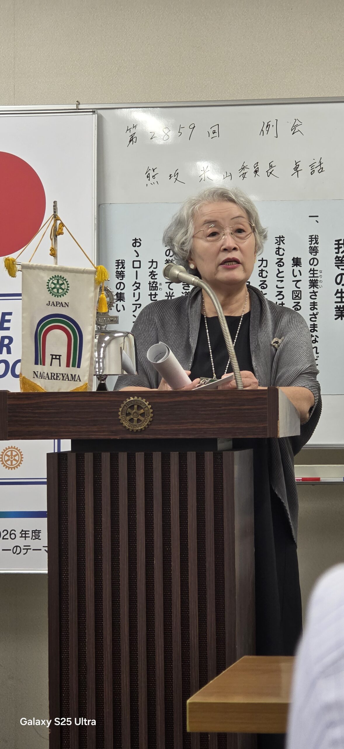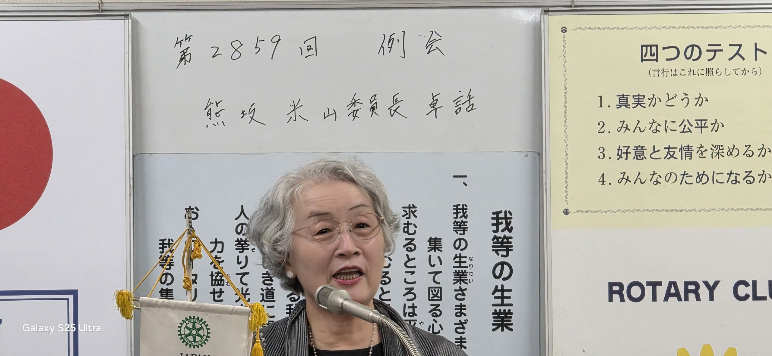 本日は、熊坂牧子ロータリー米山記念奨学会委員会委員長の卓話となります。